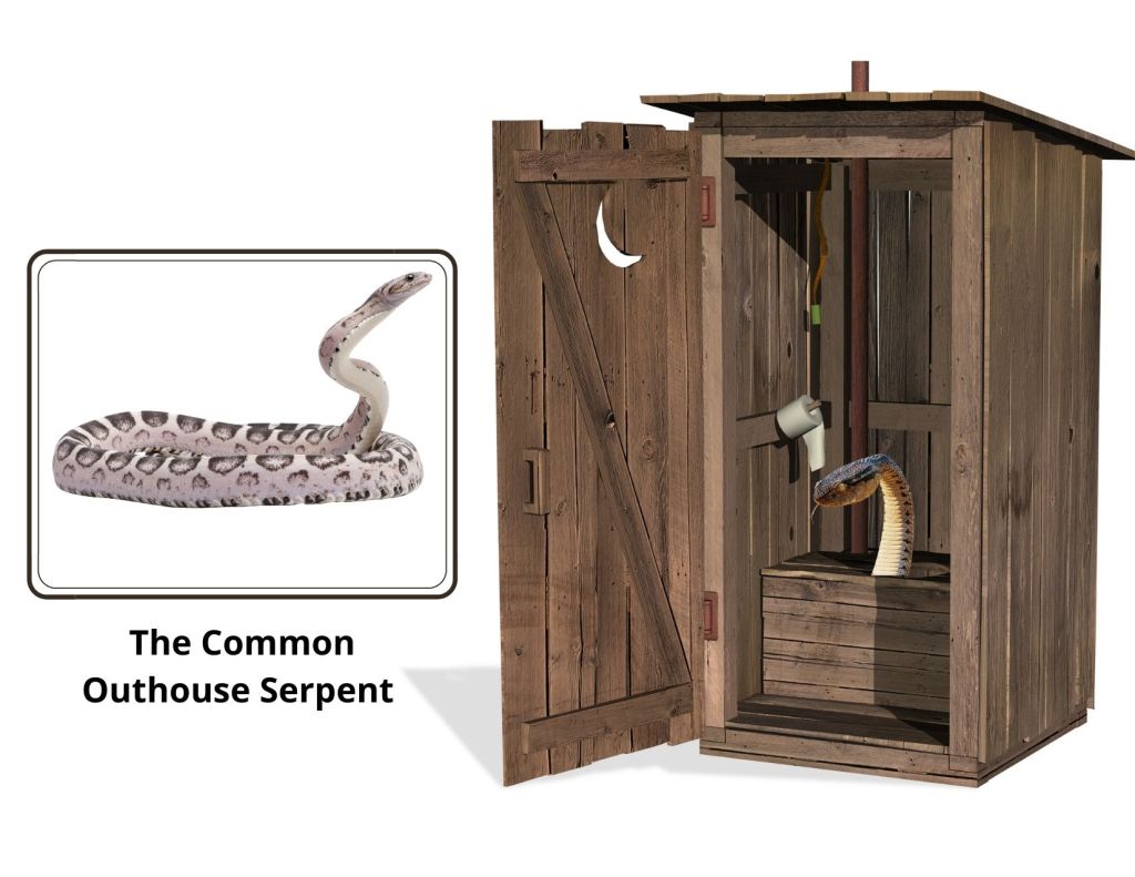 The Common Outhouse Serpent’s colouring allows the serpent to blend into most outhouses effectively whilst it lies in wait.